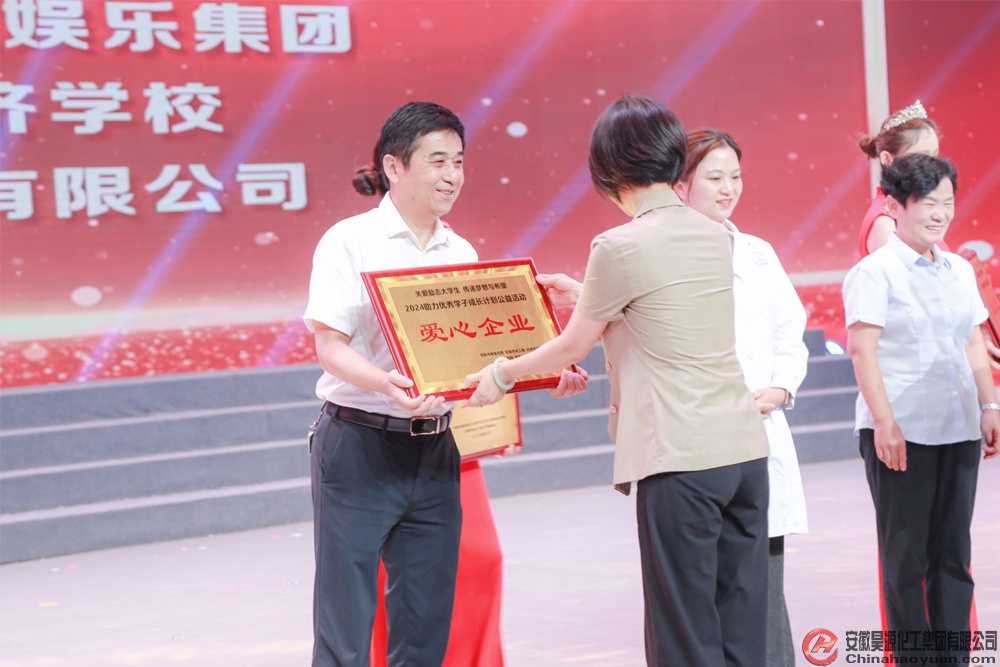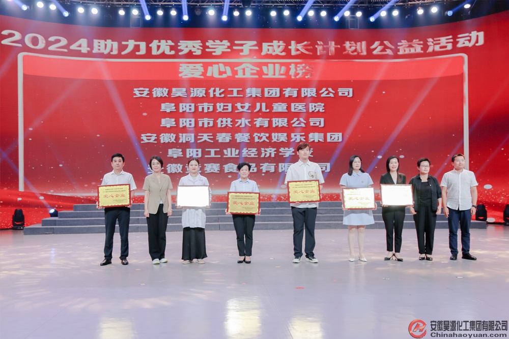 8月13日,由中共阜陽(yáng)市委宣傳部、市關(guān)工委、共青團(tuán)阜陽(yáng)市委、市婦聯(lián)、阜陽(yáng)廣播電視臺(tái)共同主辦的“青春逢盛世 奮斗正當(dāng)時(shí),2024助力優(yōu)秀學(xué)子成長(zhǎng)計(jì)劃公益晚會(huì)”在阜陽(yáng)廣播電視臺(tái)演播大廳舉行。工會(huì)副主席戚偉代表昊源公司出席晚會(huì),并為優(yōu)秀學(xué)子頒發(fā)勵(lì)志助學(xué)金。會(huì)上,安徽昊源化工集團(tuán)有限公司被授予“愛心企業(yè)”光榮稱號(hào)。