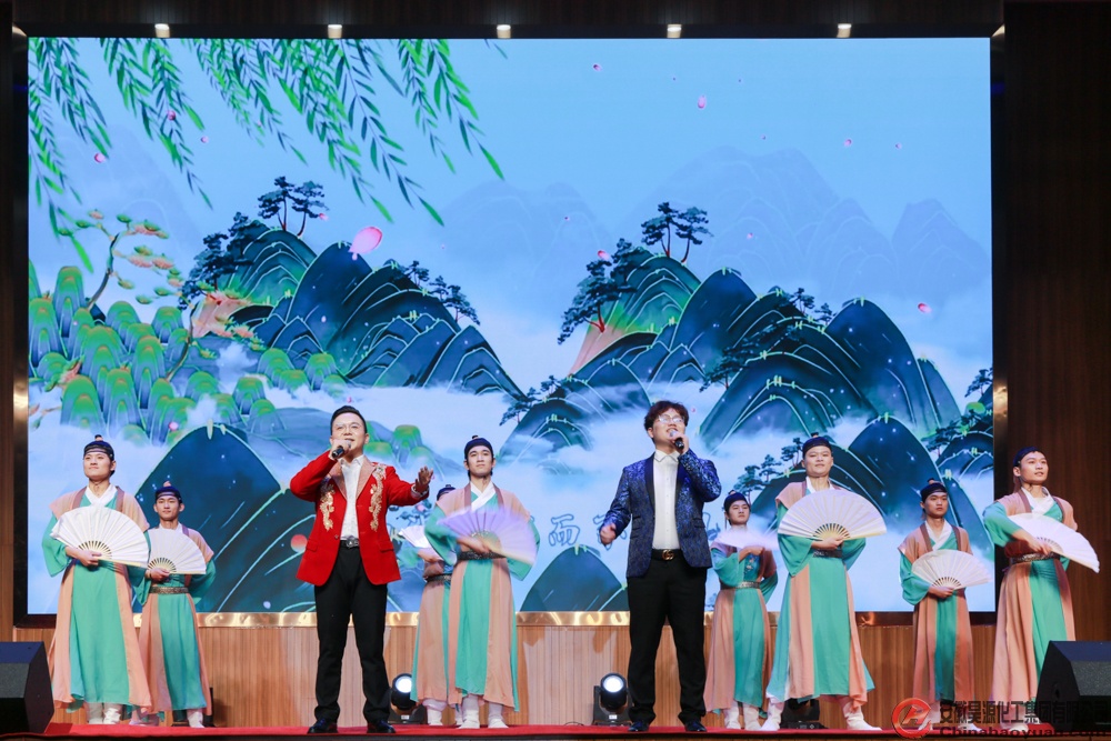 黨委書記、董事長凡殿才等公司領(lǐng)導(dǎo)走上舞臺,與演員握手,感謝演職人員為晚會辛苦付出,并與演職人員一起合影。