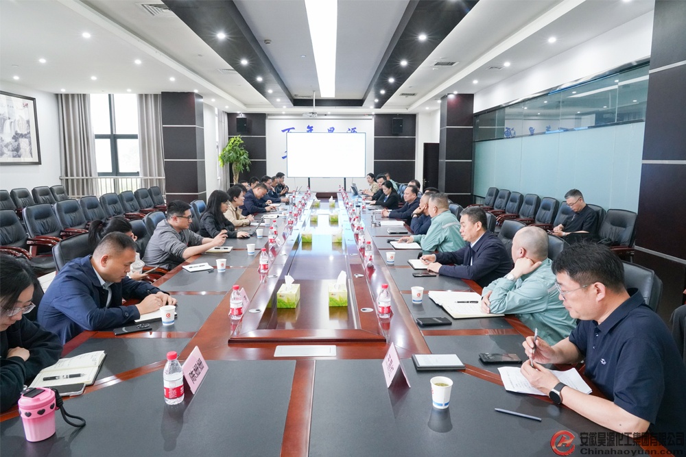 在園區(qū)會議室,朱啟峰介紹了潁東區(qū)在化工產業(yè)集群、能源基礎設施建設等方面的區(qū)位優(yōu)勢和發(fā)展?jié)摿Α?
