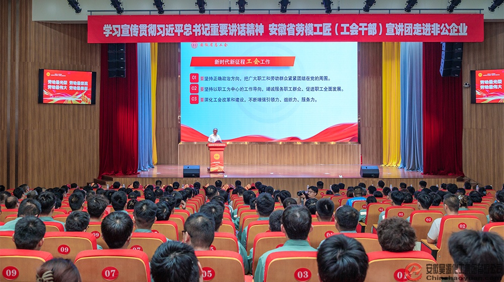 7月16日,學(xué)習(xí)宣傳貫徹習(xí)近平總書(shū)記重要講話精神安徽省勞模工匠(工會(huì)干部)宣講團(tuán)活動(dòng)走進(jìn)安徽昊源化工集團(tuán)有限公司,省總工會(huì)黨組書(shū)記、副主席徐發(fā)成以《奮斗百年路 啟航新征程》為題,圍繞學(xué)習(xí)宣傳貫徹習(xí)近平總書(shū)記在慶祝中華全國(guó)總工會(huì)成立100周年暨全國(guó)勞動(dòng)模范和先進(jìn)工作者表彰大會(huì)上的重要講話精神作主旨宣講。安徽省總工會(huì)黨組成員、副主席朱穎,阜陽(yáng)市人大常委會(huì)副主任、市總工會(huì)主席周擁軍,潁東區(qū)委書(shū)記趙群,昊源公司黨委書(shū)記、董事長(zhǎng)凡殿才出席活動(dòng)。