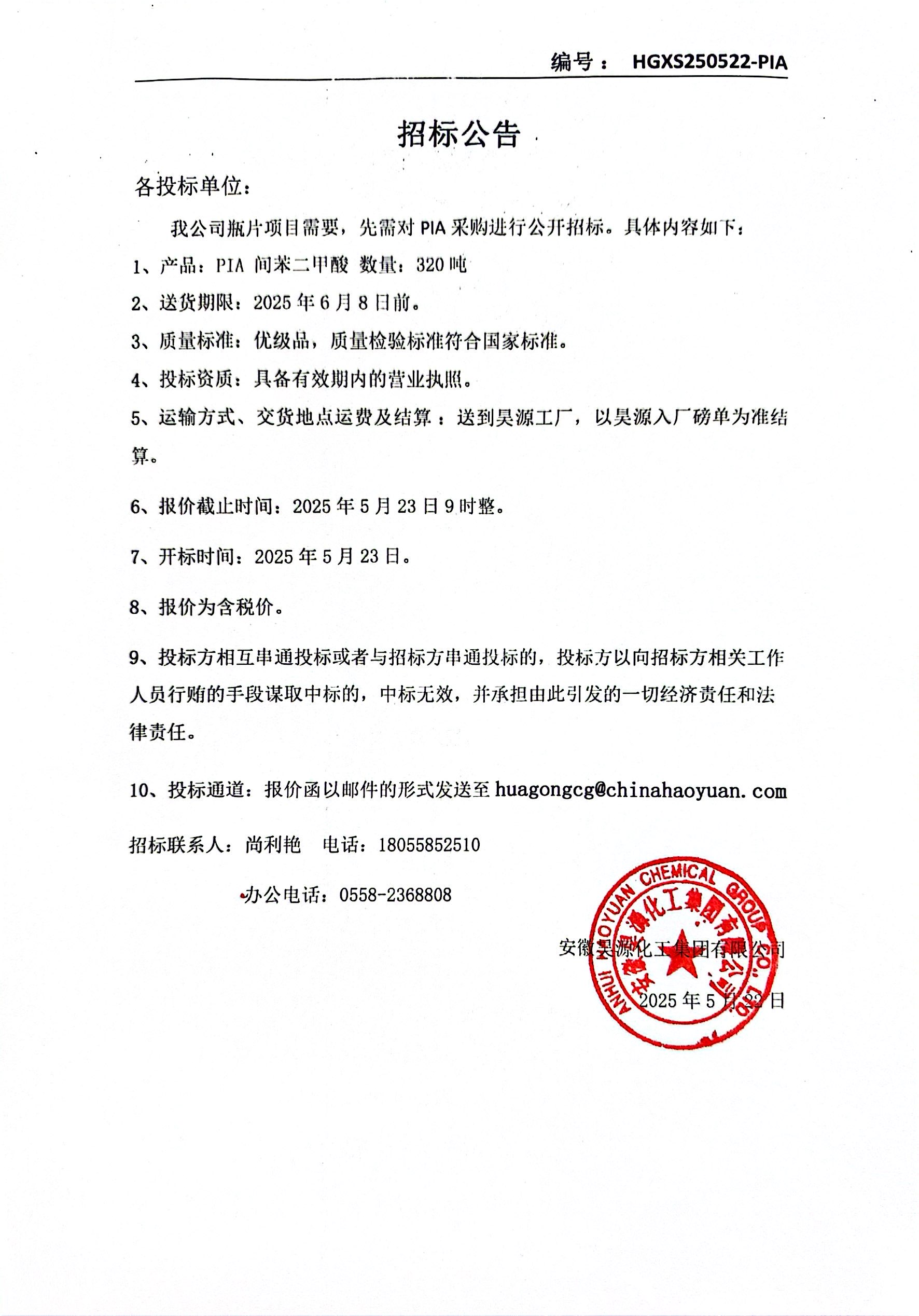 上一條:一批無(wú)水硫酸鈉、工業(yè)鹽銷售招標(biāo)公告下一條:化工銷售粗甲醇銷售招標(biāo)公告